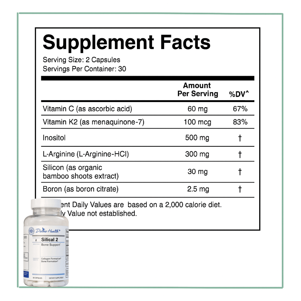 Take four (4) capsules of Silical 1 and two (2) capsules of Silical 2 daily with food, or as directed by your healthcare provider.