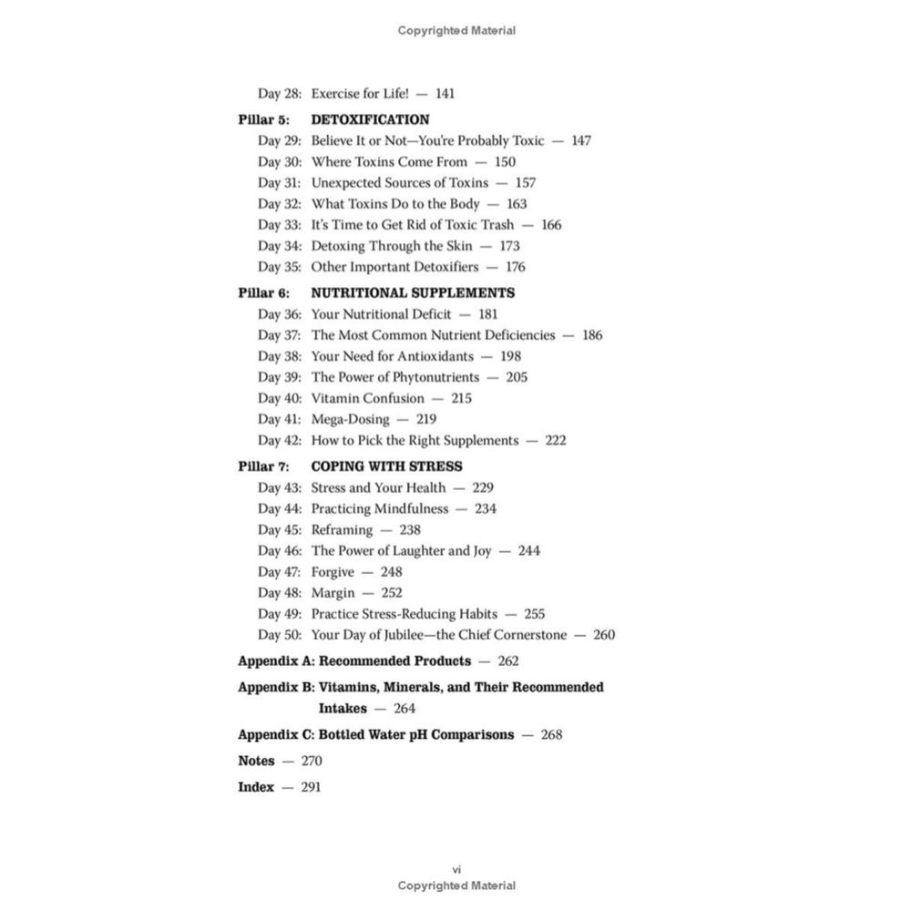 The cornerstone of Dr. Colbert’s health philosophy. In this New York Times bestselling guide, Dr. Don Colbert, M.D. lays out a 50-day, step-by-step plan to build lasting health by focusing on seven foundational lifestyle pillars. Blending medical expertise with biblical wisdom, this book shows how small, consistent changes can transform your body, mind, and spirit.