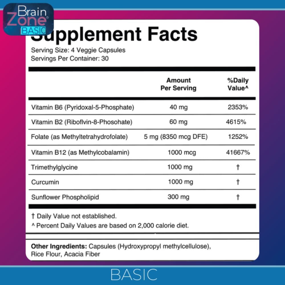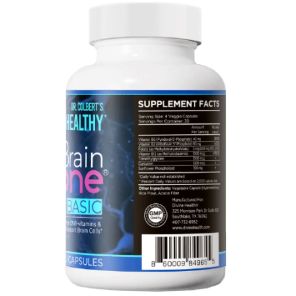 Dr. Colbert’s Brain Zone Basic is designed to support focus, mental clarity, and neurological health. With key methylated B vitamins, Trimethylglycine, and Curcumin, this formula helps promote cellular energy, cognitive performance, and a healthy inflammation response—without artificial fillers or stimulants.