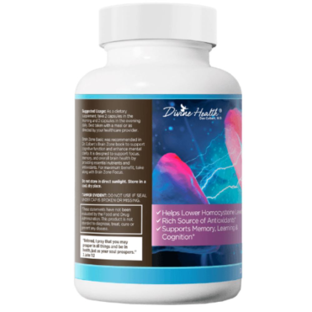 Divine Health’s Brain Zone Basic by Dr. Don Colbert MD. A daily formula designed to support focus, clarity, memory, and overall cognitive health.