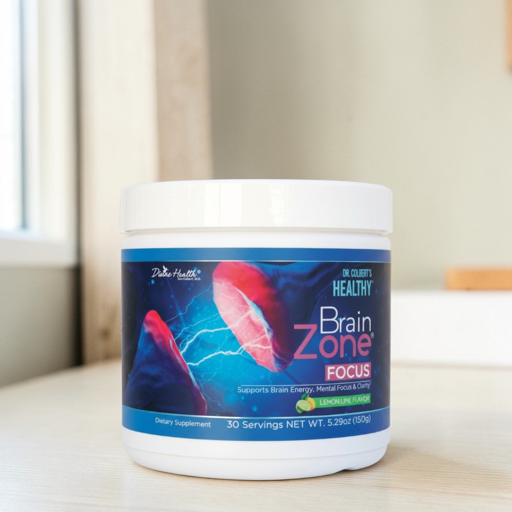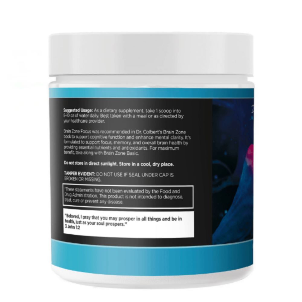 Brain Zone Focus Powder by Dr. Don Colbert MD. A targeted formula designed to support focus, clarity, memory, and overall cognitive health in a delicious powder blend.