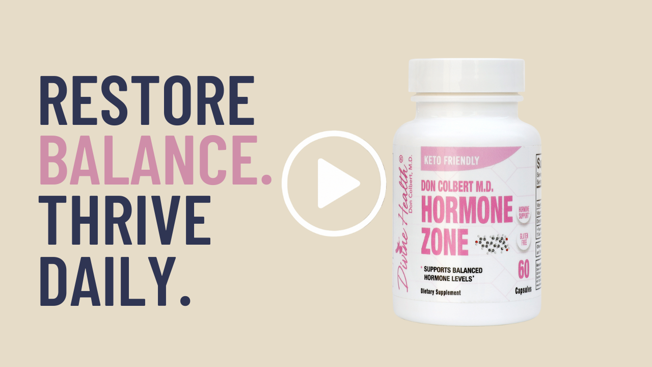 Divine Health’s Hormone Zone by Dr. Don Colbert MD. A balanced formula designed to support healthy hormone function, energy, metabolism, and overall vitality.