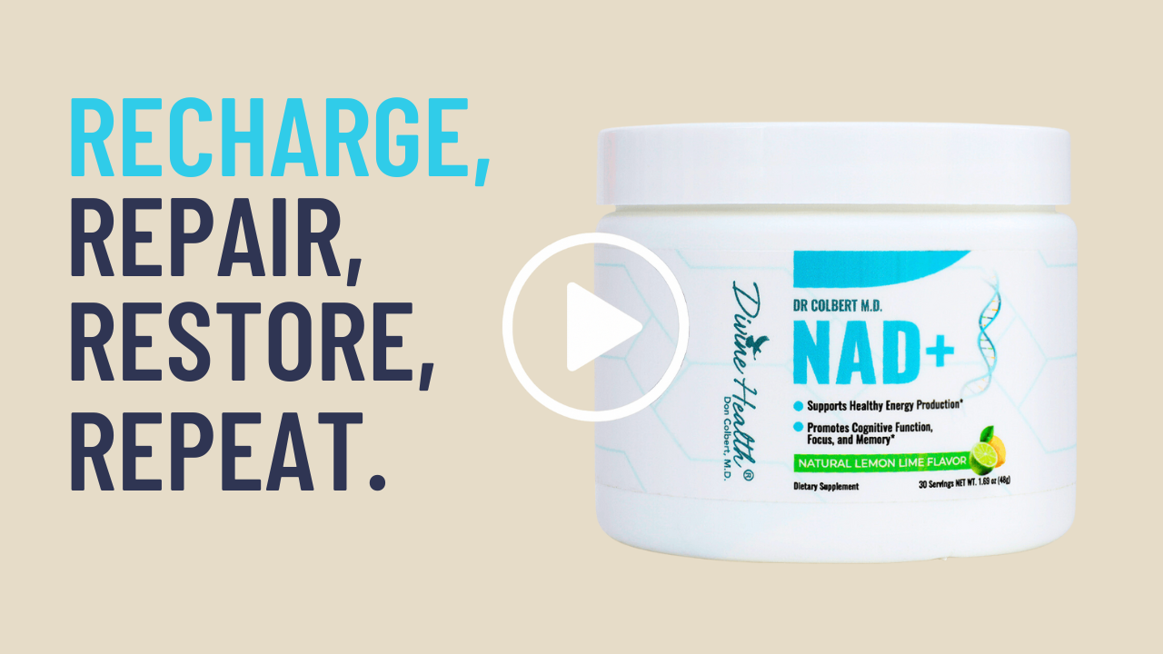NAD+ Powder by Dr. Don Colbert MD. A powerful formula designed to support healthy energy, cellular repair, focus, and overall vitality in an easy-mix powder.