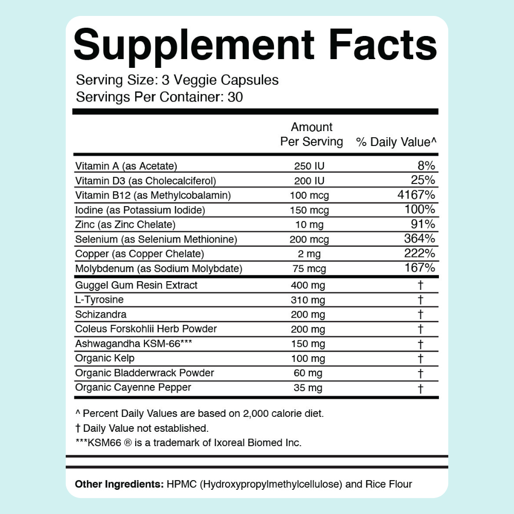 - Organic Herbal Extracts (Schizandra, Organic Kelp, Bladderwrack): Traditional ingredients long valued for supporting thyroid function, enhancing metabolic processes, and promoting hormonal balance.